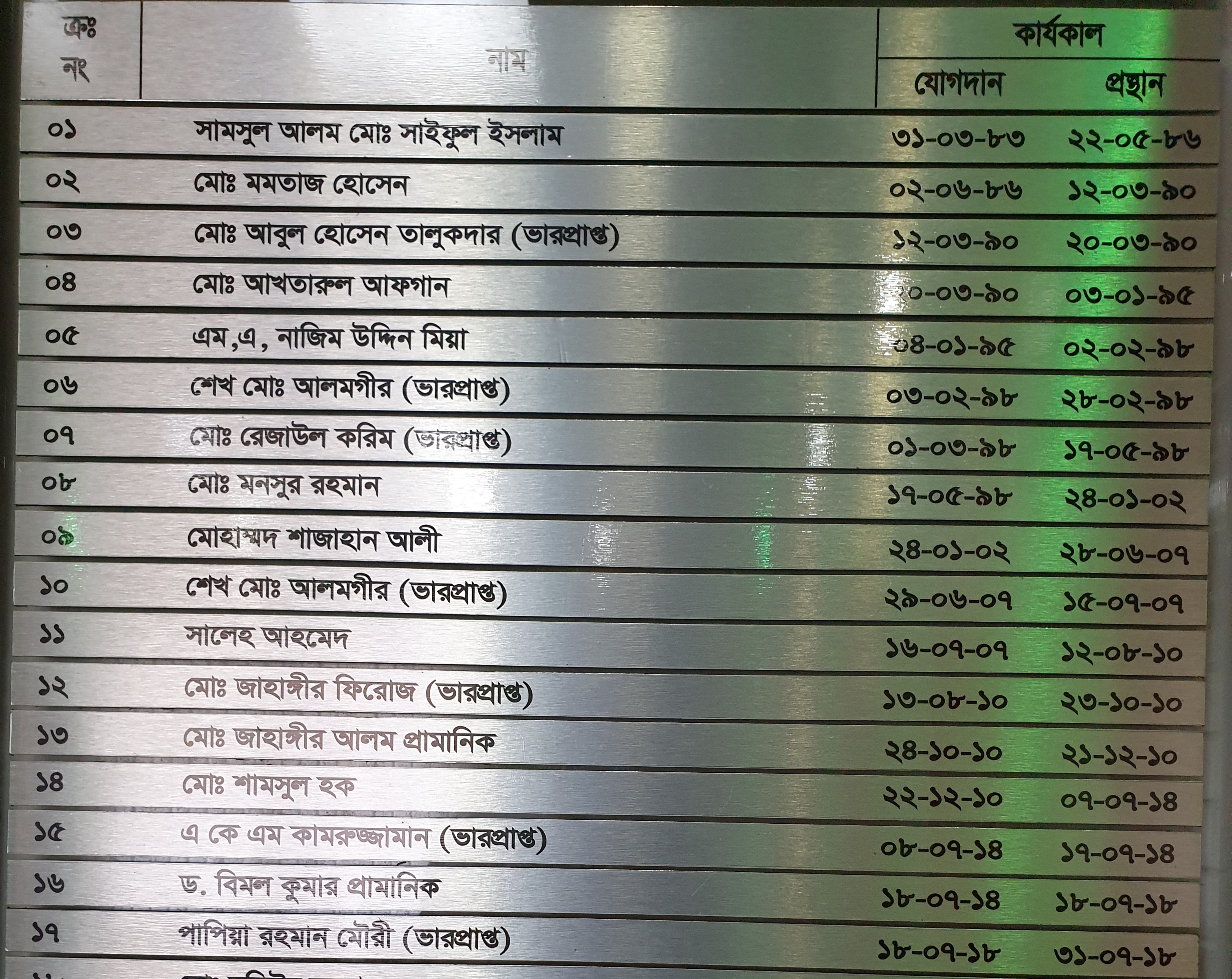 প্রাক্তন অফিস-প্রধানগণ
